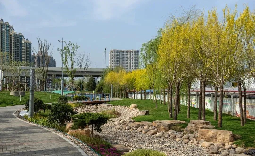寶通街快速路景觀綠化作為濰坊市海綿城市示范建設(shè)重點(diǎn)項(xiàng)目,引領(lǐng)各方關(guān)注,對(duì)全市海綿城市系統(tǒng)化建設(shè)具有引領(lǐng)示范帶頭作用。昌大園林公司和項(xiàng)目部充分貫徹設(shè)計(jì)理念,精細(xì)化施工,把海綿城市的理念貫徹到每一個(gè)施工細(xì)節(jié),打造出采用陶瓷透水磚園路鋪裝、下沉式綠地、雨水花園、渤海路節(jié)點(diǎn)旱溪等豐富的生態(tài)環(huán)境,再精心配置不同種類、色彩、造型的景觀小品及苗木,讓道路沿線綠化景觀形成豐富的節(jié)奏和層次變化,使寶通街快速路綠化成為既是海綿又是風(fēng)景的特色景觀。