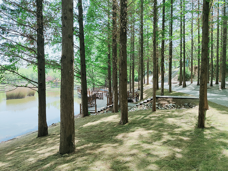然而,建成后一個融入安丘青云山大園的這個動物園在建設(shè)之初對于園林公司來說卻是難題頻現(xiàn)。其一,該項(xiàng)目開工前,既沒有同類的工程案例可供借鑒,也沒有類似工程的施工經(jīng)驗(yàn)。工程開工時新冠疫情肆虐,園林公司張本星項(xiàng)目管理團(tuán)隊(duì)?wèi){著科學(xué)嚴(yán)謹(jǐn)?shù)墓ぷ鲬B(tài)度,精益求精的工匠精神,遵循“策劃先行,樣板引路”的工作方針,在干中學(xué),在學(xué)中干,克服一個又一個困難,最終工程圓滿交付。之所以能夠做到這樣,主要取決于四個方面,一是昌大鐵軍的敬業(yè)精神,這是所有昌大人共同的精神財(cái)富;二是昌大人對于工程質(zhì)量和景觀效果的高站位認(rèn)知和高層次追求;三是園林人對于園林事業(yè)的追求以及那份執(zhí) 著的好鉆研的勁頭;四是他們對自己的完全自信。這四點(diǎn)匯成一起就贏得建設(shè)單位和社會的一致好評。正所謂:助人即助已,合作才能共贏。其二,如何讓新建景觀節(jié)點(diǎn)和原有景觀和諧統(tǒng)一,如何讓新建景觀節(jié)點(diǎn)為原有景觀加分增靚是這個工程的難點(diǎn),也是園林公司項(xiàng)目團(tuán)隊(duì)自始至終一直思考并最終解決的問題。本著人與自然和諧共生的理念,以園林人特有的專業(yè)視角,因地制宜,錯落有致,移步易景,反復(fù)論證,形成設(shè)計(jì)方案;在施工過程中再不斷優(yōu)化完善,最終完美呈現(xiàn)在大眾面前。例如雁棲湖,原來是游覽路線邊一個三面山體圍成的垃圾場,經(jīng)過垃圾清理,排木成道,引水上山,疊石成瀑,環(huán)山成湖,湖上建亭,山上綠樹成蔭,水中大雁遨游,多么和諧宜人。再如松鼠林,就是在原有水杉樹林中建設(shè)松鼠館舍,游人漫步林中,觸手可及處,松鼠在上下歡跳,是小朋友們的最愛。