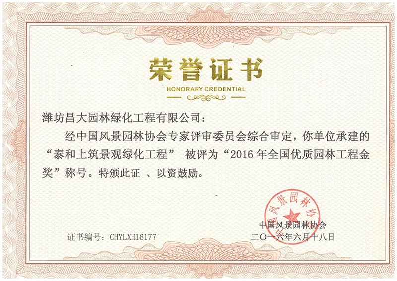 全國(guó)優(yōu)質(zhì)園林工程金獎(jiǎng)