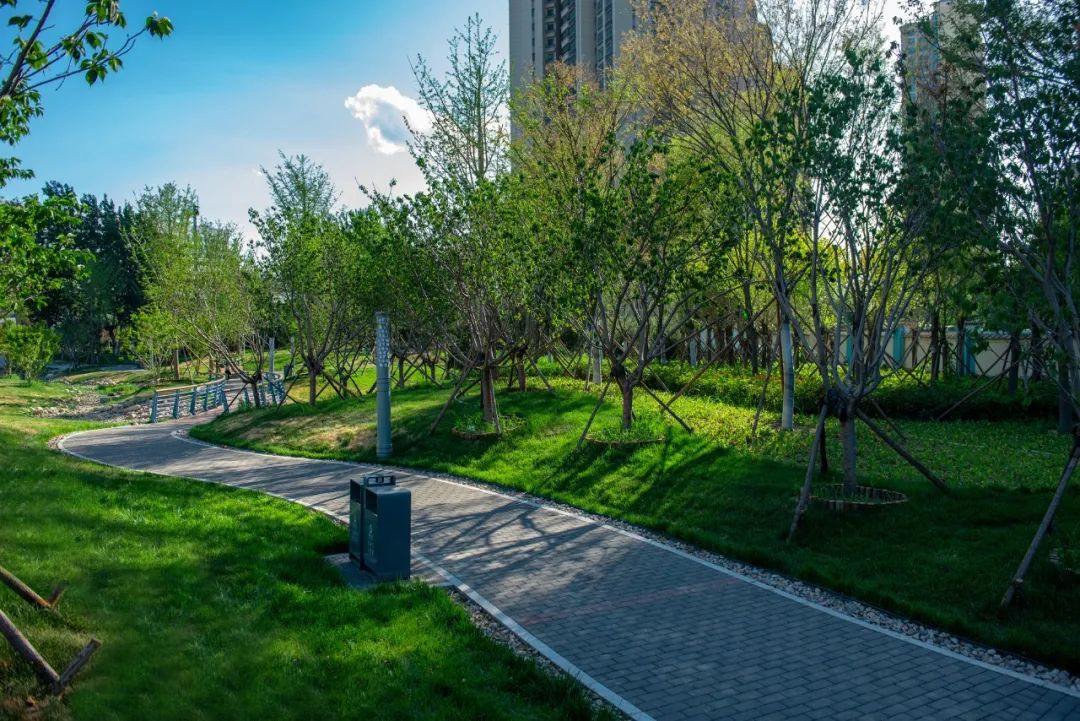 寶通街快速路景觀綠化作為濰坊市海綿城市示范建設(shè)重點(diǎn)項(xiàng)目,引領(lǐng)各方關(guān)注,對(duì)全市海綿城市系統(tǒng)化建設(shè)具有引領(lǐng)示范帶頭作用。昌大園林公司和項(xiàng)目部充分貫徹設(shè)計(jì)理念,精細(xì)化施工,把海綿城市的理念貫徹到每一個(gè)施工細(xì)節(jié),打造出采用陶瓷透水磚園路鋪裝、下沉式綠地、雨水花園、渤海路節(jié)點(diǎn)旱溪等豐富的生態(tài)環(huán)境,再精心配置不同種類、色彩、造型的景觀小品及苗木,讓道路沿線綠化景觀形成豐富的節(jié)奏和層次變化,使寶通街快速路綠化成為既是海綿又是風(fēng)景的特色景觀。